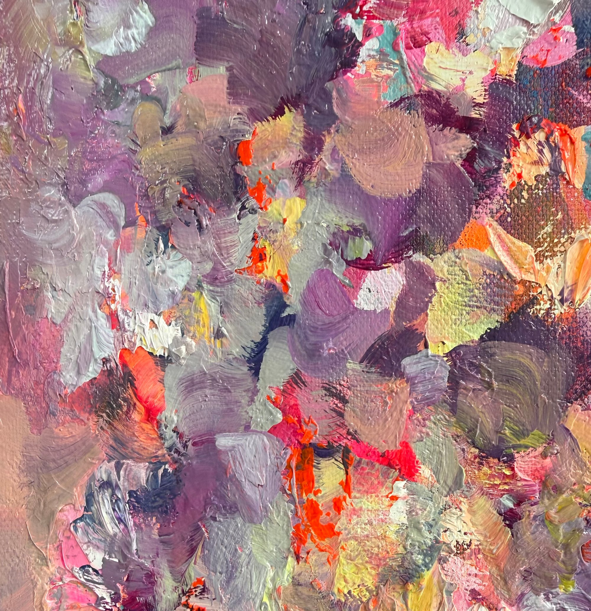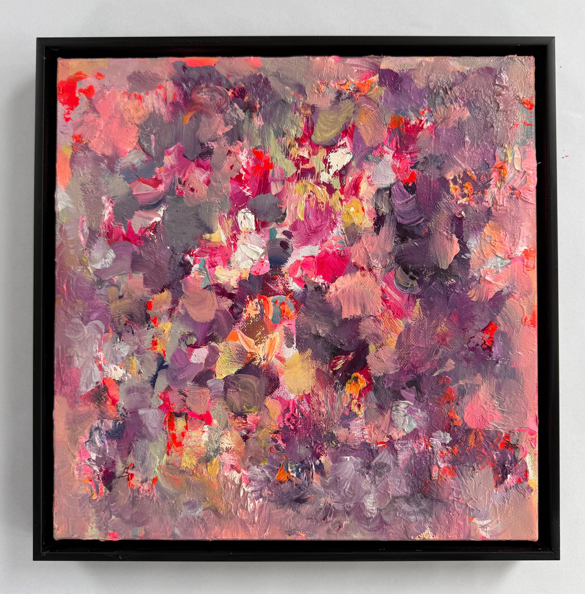 Acrylic and oil on canvas in black wood frame